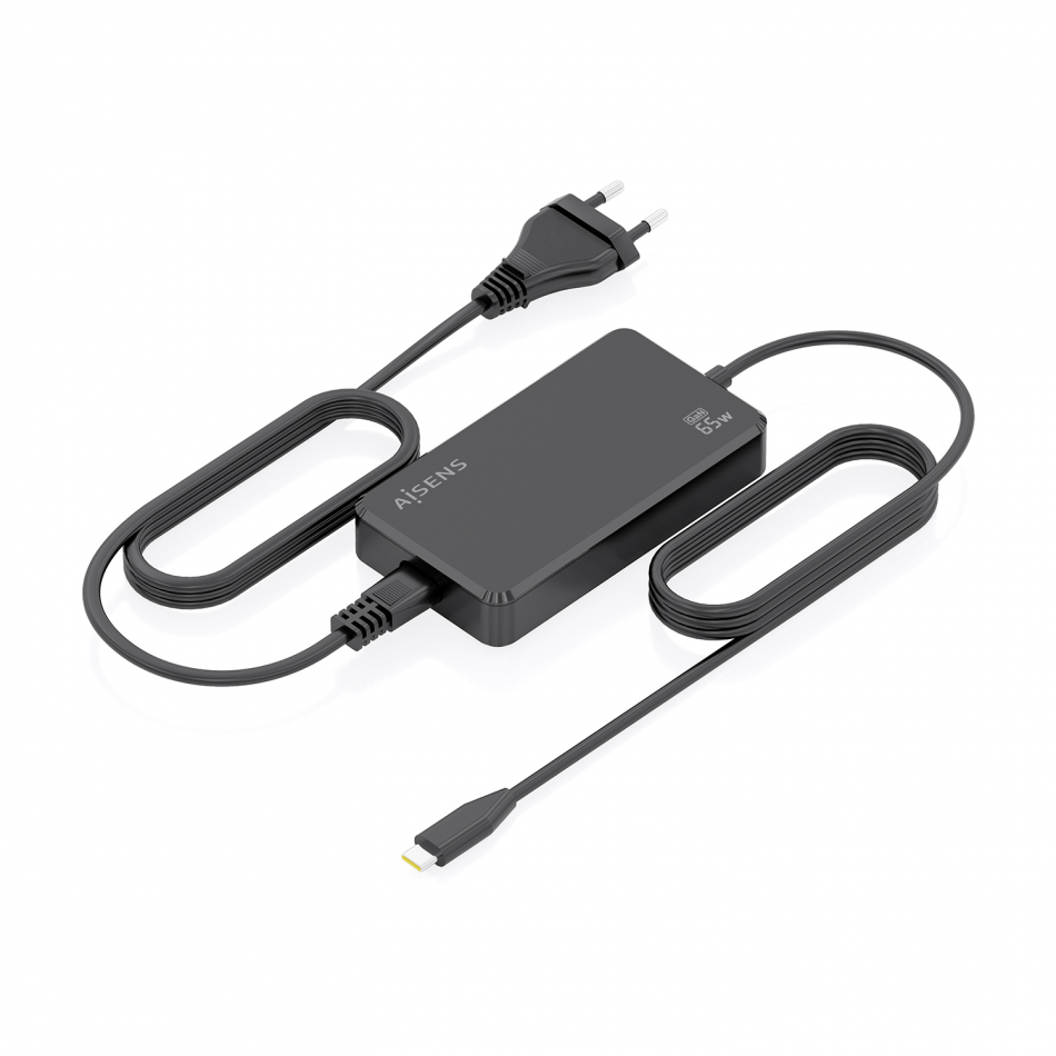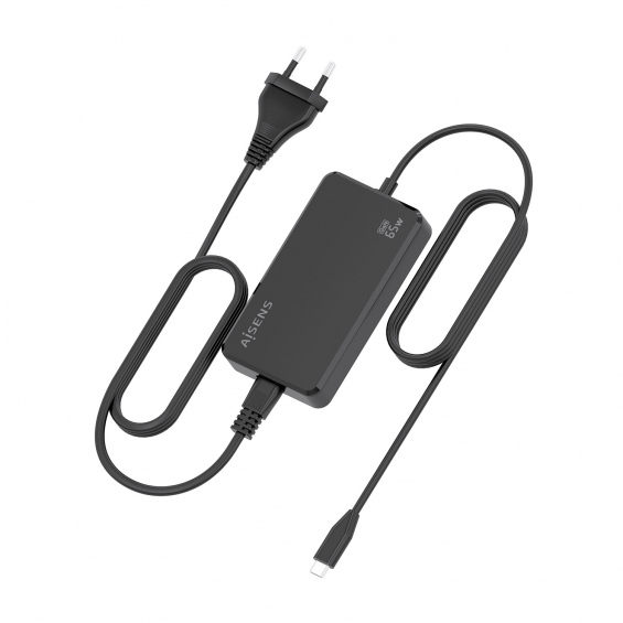 AISENS Cargador De Sobremesa GaN 65W PD3.0 1xUSB-C 1.8m, Negro, Universal, Interior, 110 - 240 V, 50 - 60 Hz, 65 W, 5, 9, 12, 15, 20 V