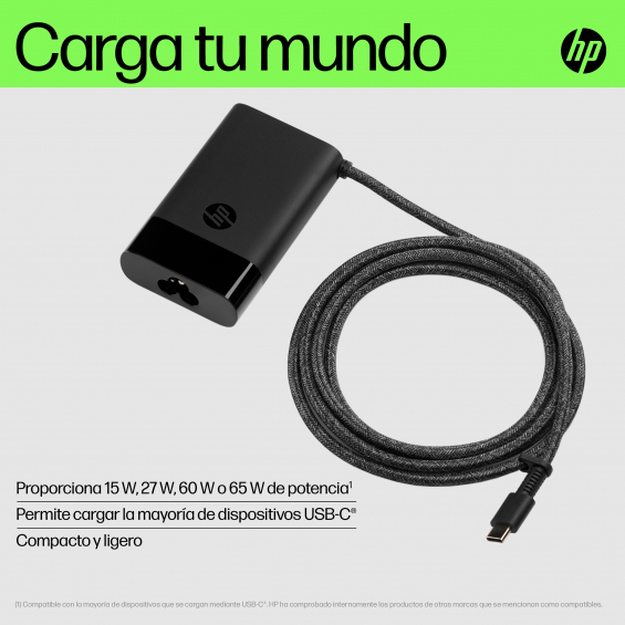 HP Cargador para portátil USB-C de 65 W, Portátil, Interior, 90 V, 47 - 63 Hz, 65 W, 5 - 20 V