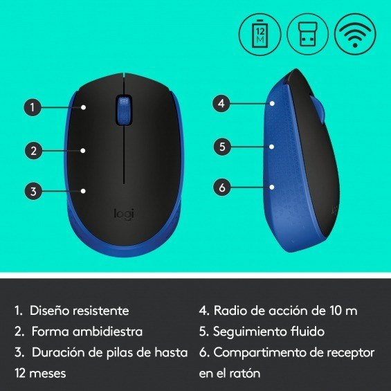 La forma del ratón ofrece un cómodo soporte para la mano durante horas y horas de uso. El diseño ambidiestro y la posibilidad de reasignar las funciones de los botones derecho e izquierdo hacen que M171 sean los ratones ideales para cualquier mano.
