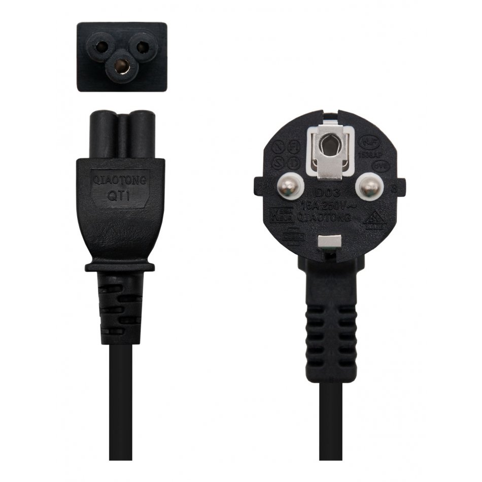 Nanocable Cable de Alimentación Trébol, CEE7 acodado/M-C5/H, Negro, 3 m, 3 m, CEE7/7, C5 acoplador