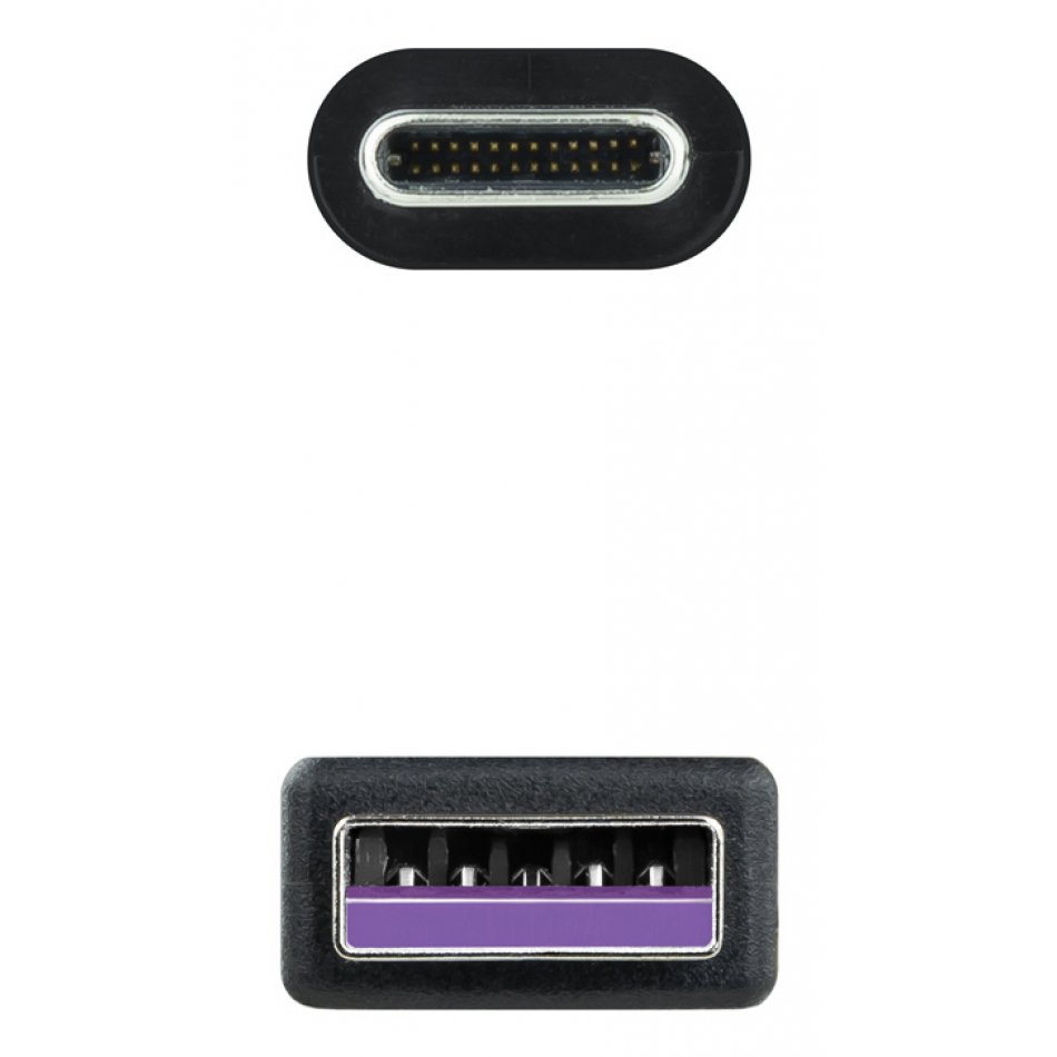 Nanocable Cable USB 2.0 3A, tipo USB-C/M-A/M, Negro, 1.5 m, 1,5 m, USB C, USB A, USB 2.0, 0,48 Gbit/s, Negro