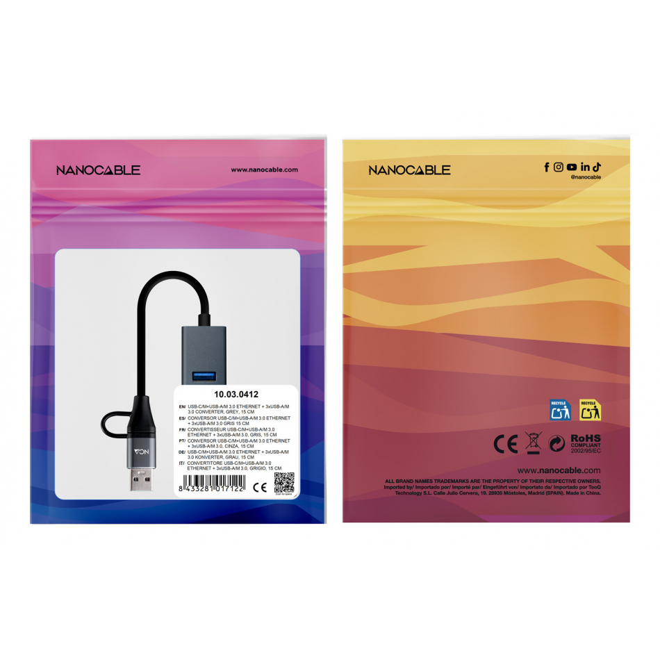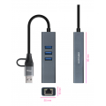 Nanocable CONVERSOR USB-C+USB-A/M 3.0 ETHERNET+ 3xUSB-A 15CM