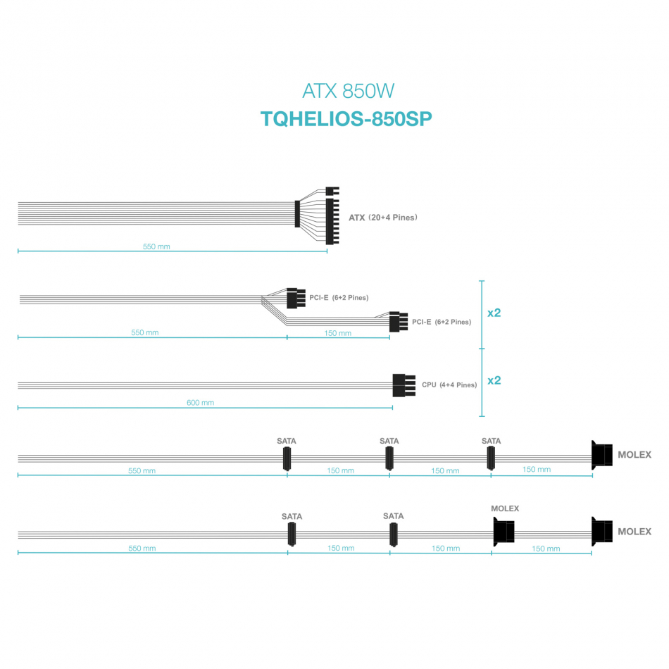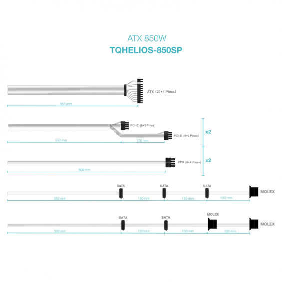 Longitud del cable de alimentación SATA: 550,700,850,1000 mm