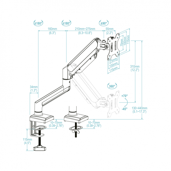 Tooq Soporte de Mesa con Brazo Articulado para Monitor de 13"-34" - Giratorio e Inclinable Peso Max 10kg Blanco