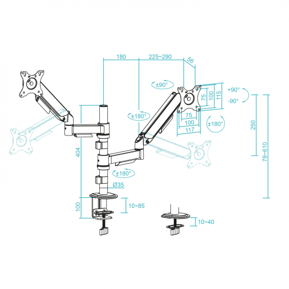 Tooq Soporte de Mesa con Brazos Articulados para 2 Monitores de 17"-32" - Regulable en Altura, Giratorio e Inclinable Peso Max 9