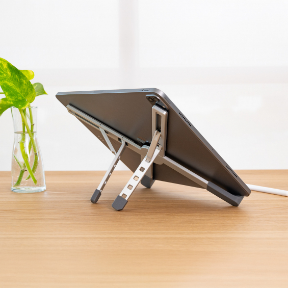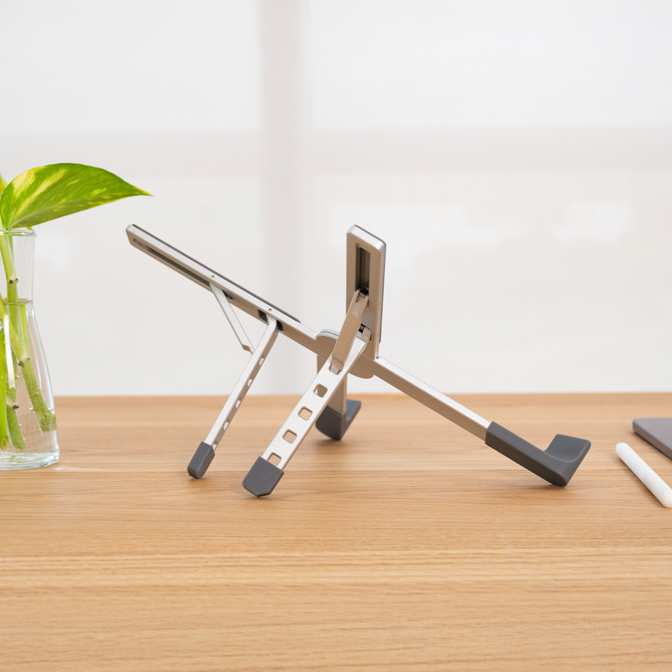 TooQ Soporte elevador plegable de aluminio para portátiles, Plata, Soporte para ordenador portátil, Plata, Aluminio, Silicona, 27,9 cm (11"), 43,9 cm (17.3"), 260 mm