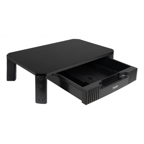 TooQ Soporte Elevador Multiusos con Cajón para Monitor/Portátil, Negro, Independiente, 20 kg, Ajustes de altura, Negro