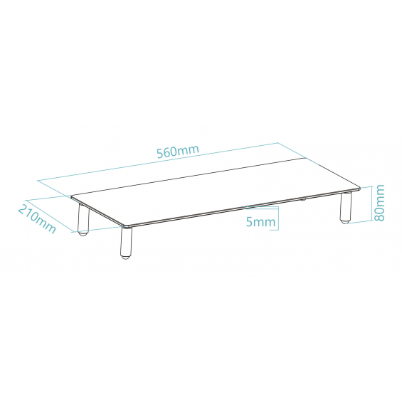 TooQ TQMR061, Soporte para ordenador portátil, Transparente, Aluminio, Silicona, Vidrio templado, 20 kg, 210 mm, 80 mm