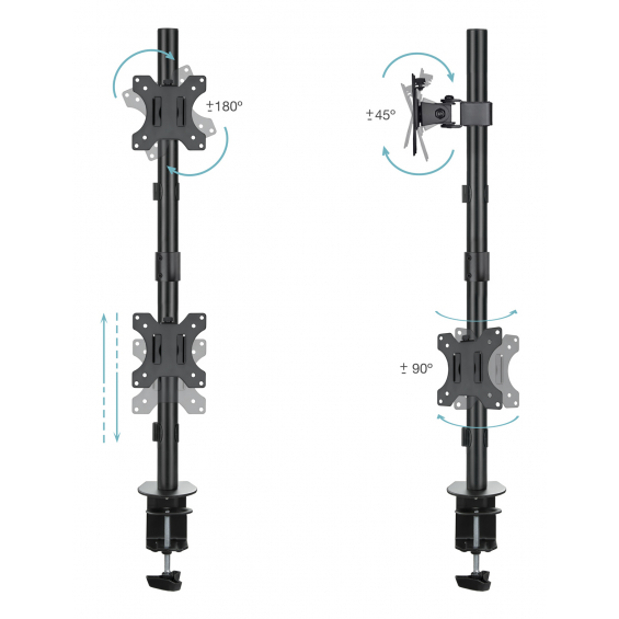 TooQ Soporte de Mesa, Giratorio e Inclinable, Vertical, para 2 Pantallas 13”-32”, Negro, Abrazadera/Atornillado, 16 kg, 33 cm (13"), 81,3 cm (32"), 100 x 100 mm, Negro