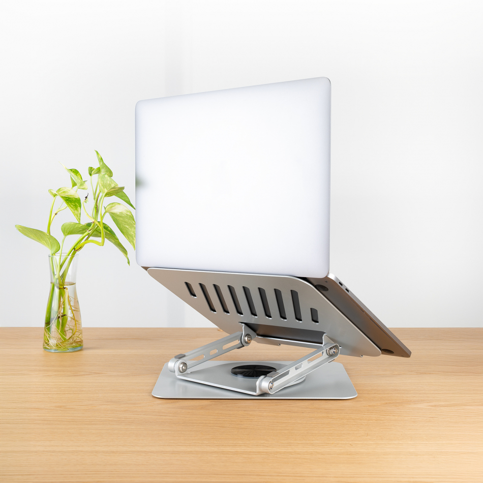 TooQ Soporte Elevador con rotación 360° y ajustable, para dispositivos de 11”-17”, Color Plata, Soporte para ordenador portátil, Plata, Acero, 27,9 cm (11"), 43,2 cm (17"), 27,9 cm (11")