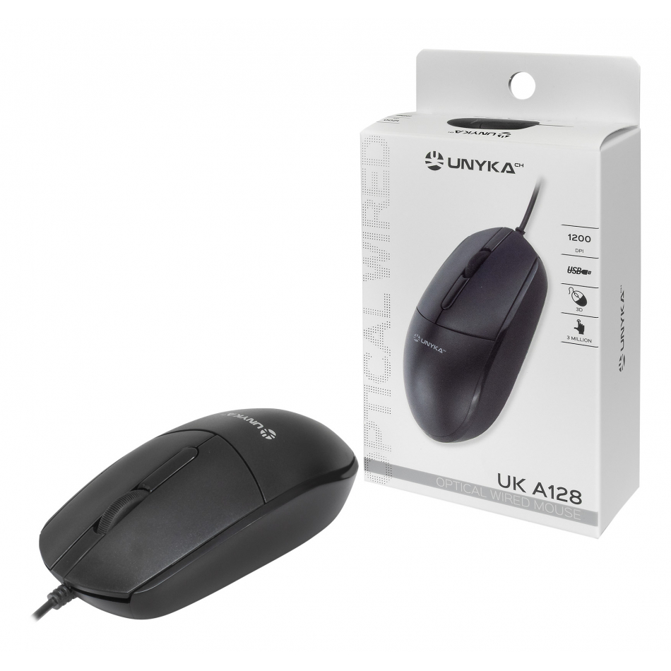 UNYKAch UK 128, Ambidextro, Óptico, USB tipo A, 1200 DPI, 3000 pps, Negro